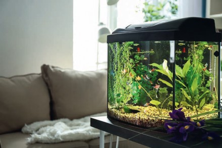 Akwarium powinno być ozdobą pokoju, jednak wybierając na nie miejsce, musimy kierować się również względami bezpieczeństwa. Zbiornik wypełniony wodą to duży ciężar (1 l wody to ok. 1 kg + szkło, podłoże, kamienie itd.), dlatego upewnijmy się, że stanowisko wytrzyma takie obciążenie, warto ubezpieczyć mieszkanie przed zalaniem. Szafka pod akwarium powinna być nie tylko solidna, ale także mieć odpowiednią wysokość, abyśmy z łatwością przeprowadzali prace porządkowe – np. przycinanie roślin czy wymianę wody. Co ważne, akwarium powinno znajdować się z dala od grzejników centralnego ogrzewania oraz od okien, gdyż ciepło i światło słoneczne przyspiesza rozwój glonów oraz stać w spokojnym miejscu, ponieważ duży ruch stresuje ryby.