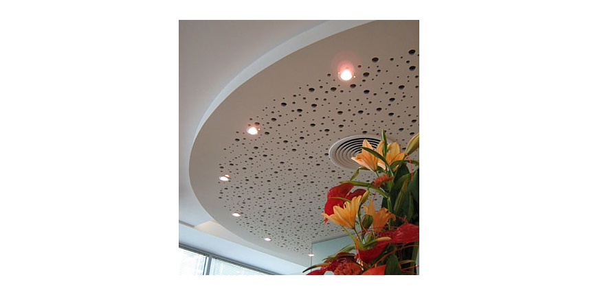 perforacji. Są one montowane, jako poszycie sufitów podwieszanych,