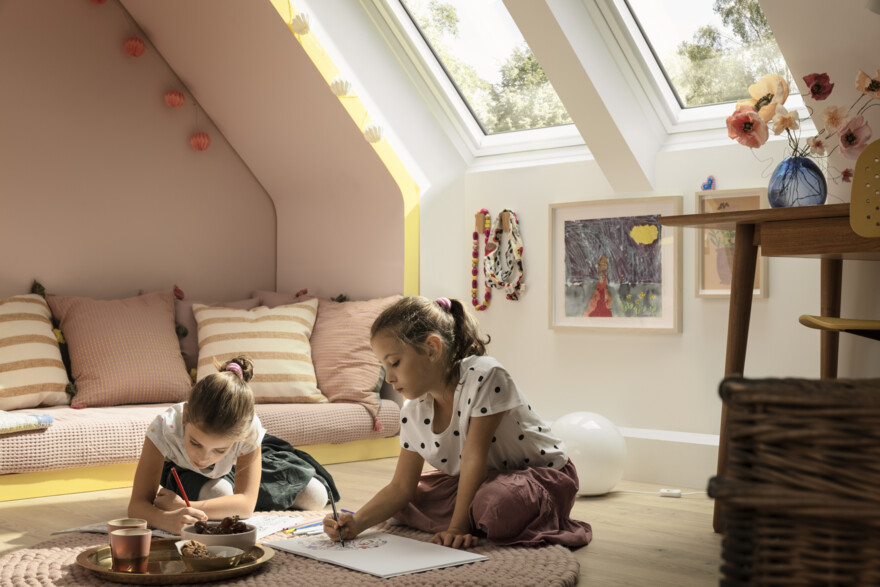 Firma VELUX oferuje pełny wybór systemów otwierania, dlatego bez względu na konstrukcję dachu i wysokość montażu, otwieranie okien dachowych będzie wygodne. Mogą być one wyposażone w uchwyt otwierający na górze lub elegancką klamkę u dołu. Warto wiedzieć, że każde okno dachowe firmy VELUX z górnym systemem otwieranie możemy zaadaptować na sterowane elektrycznie. Bardzo często na etapie budowy nie przewidujemy jednak takich rozwiązań i później musimy liczyć się z dodatkowymi pracami. Jeśli chcemy tego uniknąć, warto już na etapie prac montażowych, doprowadzić do okna przewód zasilający. Koszty takich prac są niewielkie, a dzięki nim późniejsza instalacja elektrycznego sterowania będzie prostsza, a my będziemy mogli cieszyć się większym komfortem. Jeśli jednak nie masz możliwości doprowadzenia okablowania, firma VELUX posiada rozwiązania solarne, zapewniające taki sam komfort sterowania zasilany energią słoneczną.