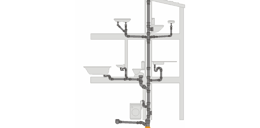 odbieranie ścieków z poszczególnych kondygnacji (dzięki podejściom)
