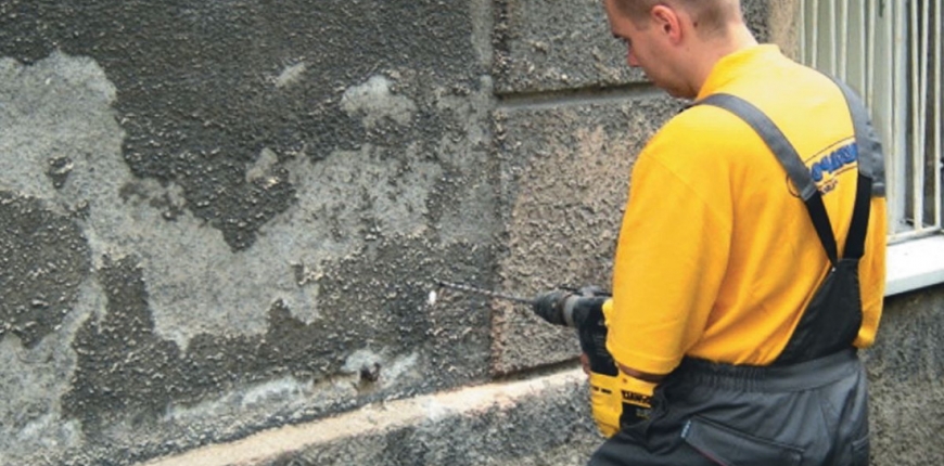 Iniekcja ścian polega na wstrzykiwaniu w przegrodę środków chemicznych, które tworzą warstwę izolującą. Istnieje kilka skutecznych metod osuszania fundamentów metodą iniekcji, ale chyba najpopularniejszą jest iniekcja krystaliczna. Wykorzystywana jest do usunięcia wilgoci kapilarnej, czyli podciągniętej z gruntu do fundamentów. Woda przemieszcza się kapilarami (mikrokanalikami w materiałach budowlanych) w górę i powoduje zawilgocenie ścian. Iniekcja fundamentów polega na wydrążeniu w murze kanalików iniekcyjnych, do których aplikowana jest mieszanina wody, cementu portlandzkiego i aktywatora krzemionkowego. Dyfuzja aktywatora powoduje, że rozprzestrzenia się on w promieniu kilku centymetrów od kanalika, tworząc specyficzną pionową izolację fundamentów. Innym sposobem osuszania ścian fundamentów jest iniekcja termiczna. W wywiercone w murze otwory wtłaczany jest strumień gorącego powietrza, który odwilgaca i osusza ściany. Następnie otwory napełnia się żywicami metylosilikonowymi – to skuteczna i wydajna bariera przeciwwilgociowa. Warto podkreślić, że osuszanie ścian tą metodą trwa tylko kilka godzin.