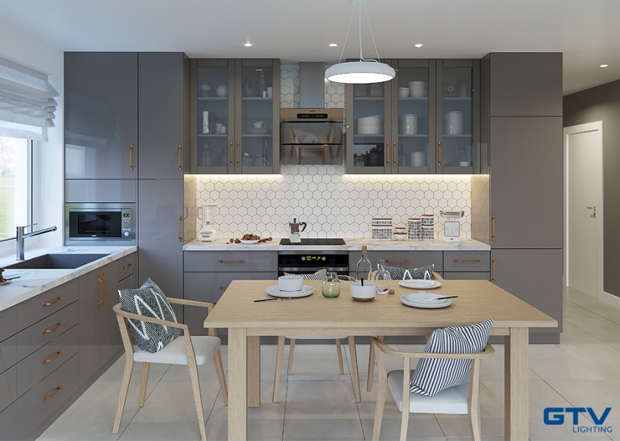 Kolejną strefą kuchenną, w której warto zamontować dodatkowe oświetlenie jest stół i wyspa. Oświetlenie w tym miejscu powinno być dosyć jasne, ale nie oślepiające, dlatego najlepszym wyborem będą klasyczne oprawy wyposażone w klosze. Możliwość regulacji wysokości tego rodzaju lamp sprawia, że możemy dzięki nim stworzyć przytulne miejsce spotkań całej rodziny. Alternatywą dla kloszy, są nowoczesne lampy ledowe do kuchni, w postaci długich linii lub w kształcie okręgu. Firma GTV wprowadziła kilka modeli w kolorze białym i czarnym, świecące jednostronnie lub dwustronnie.