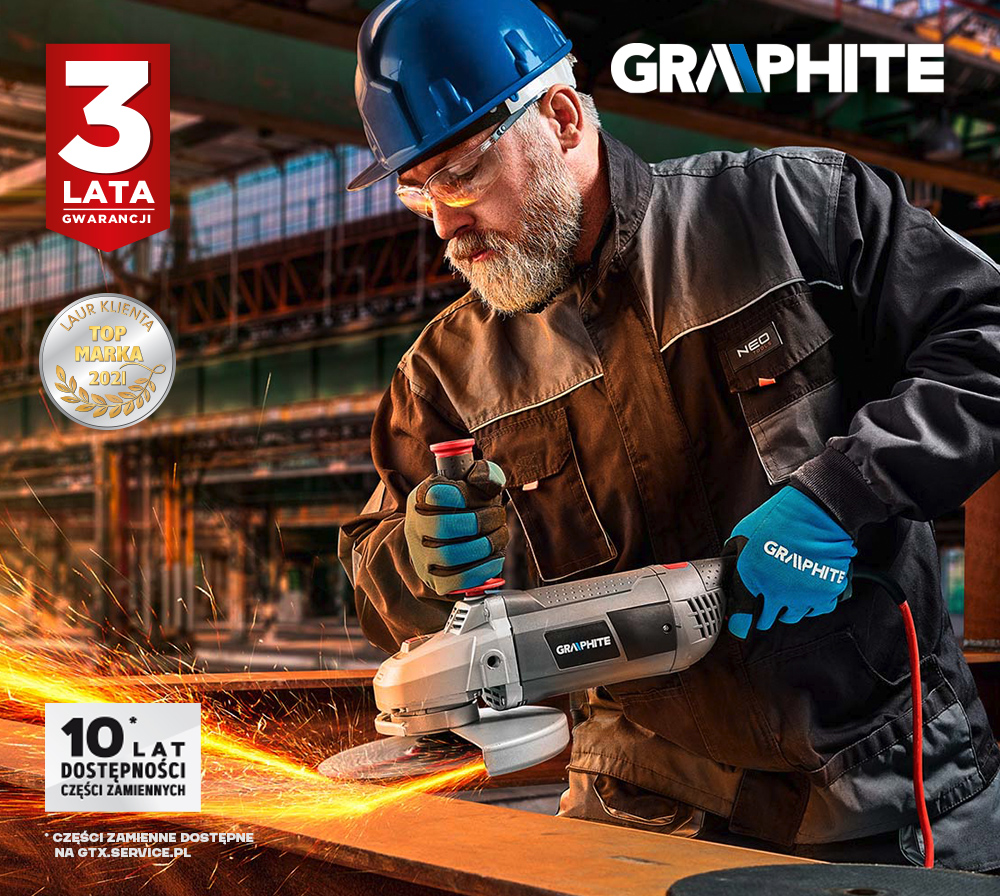Jakość każdego urządzenia potwierdzona jest opieką gwarancyjną, która w przypadku Graphite trwa trzy lata. Nie ma obaw, że kątówka niezarejestrowana lub stosowana do prac przemysłowych nie będzie objęta gwarancją. Jako producent mamy świadomość jakości naszych elektronarzędzi co z pewnością wpływa też na sposób postrzegania marki.