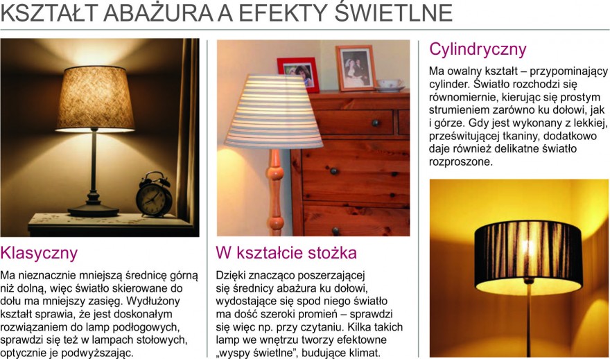 Abażury z tkanin delikatnie filtrują światło, zmniejszając jego natężenie i ograniczając zasięg.